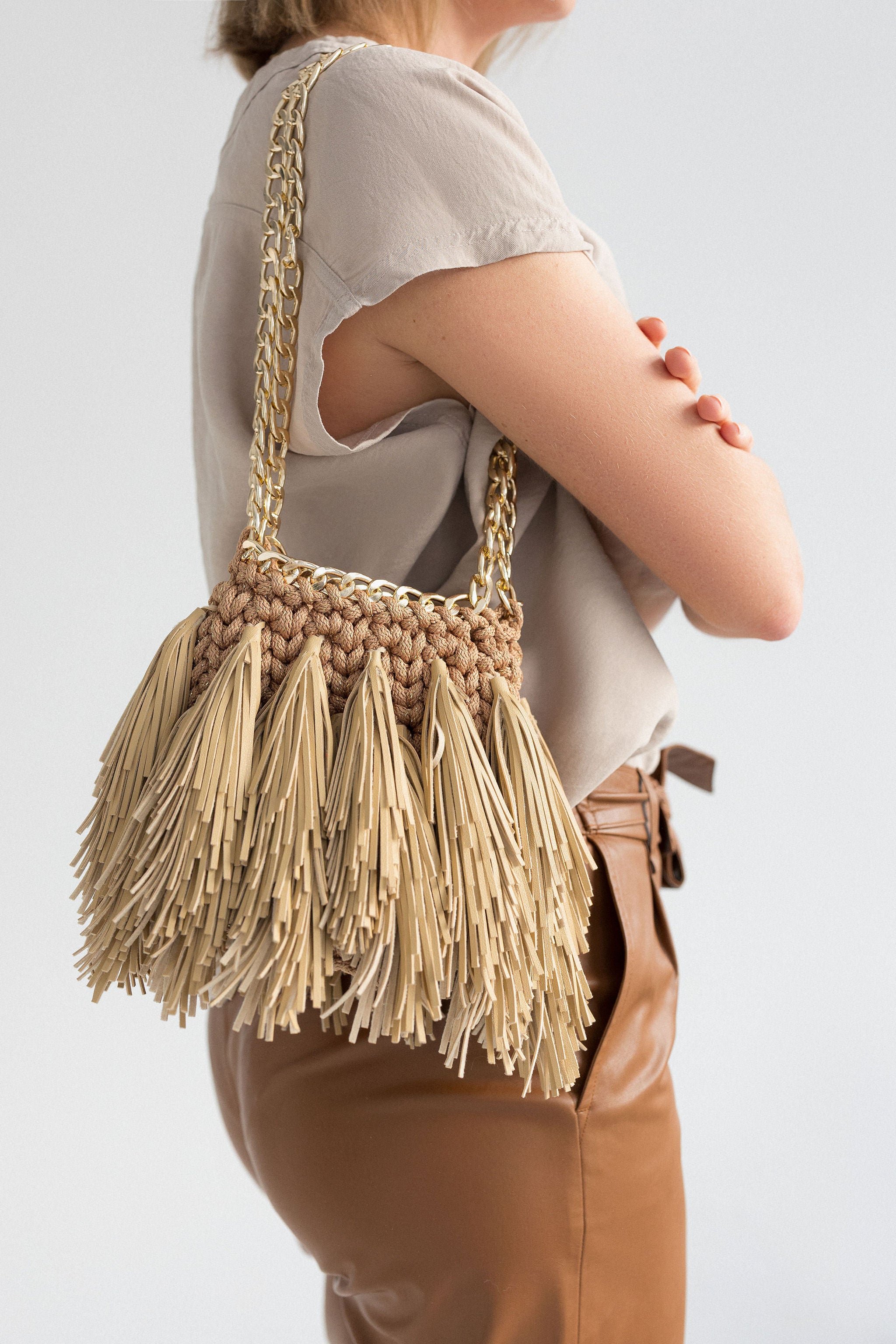 This is the first and the last model of this bag in brown that I created. No more these brown purses will be produced. This purse is only one and the only.